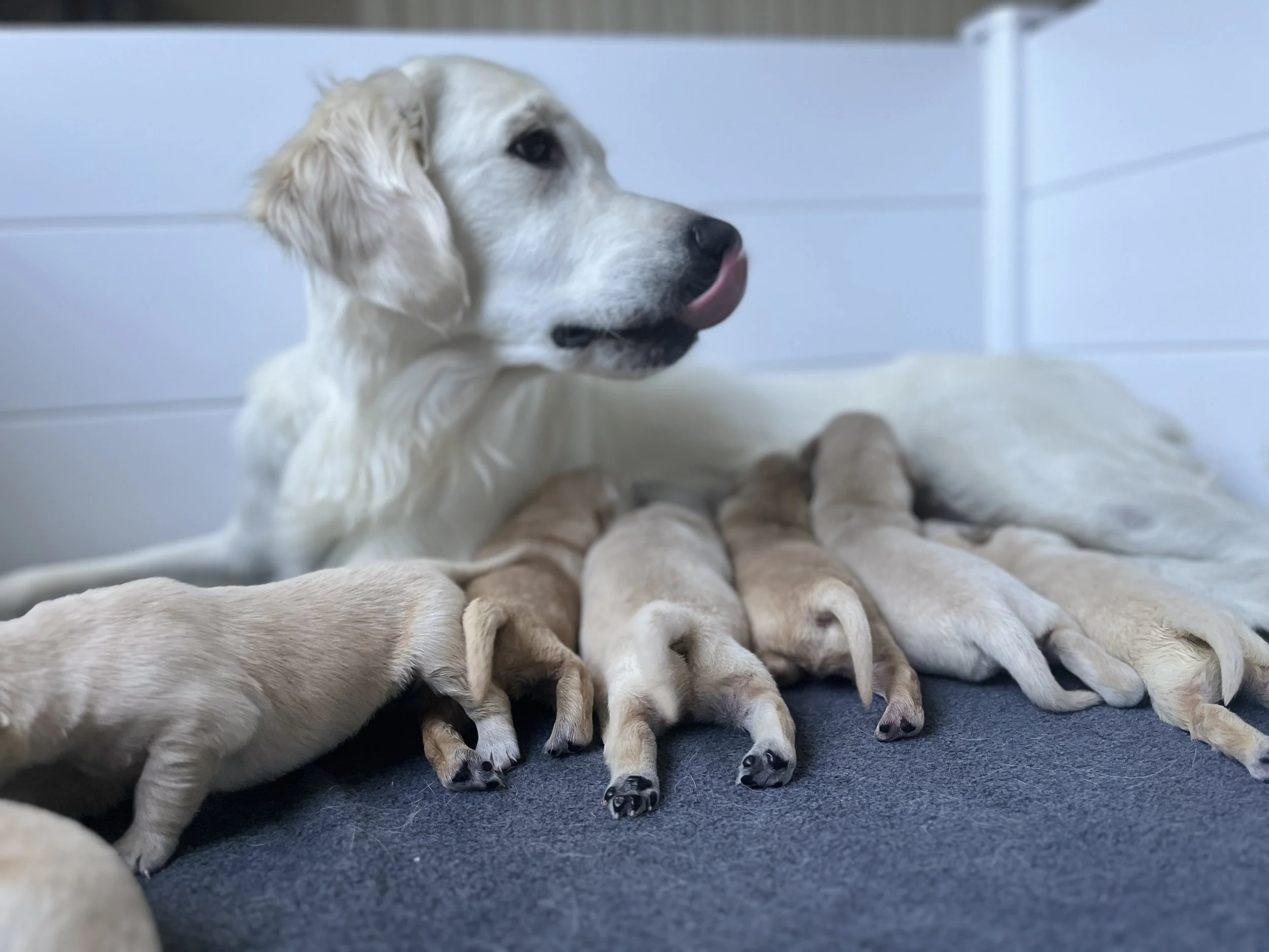 Breeding intelligent, light English type Golden Retrievers. Imagine an adorable, clumsy, and loving white shadow following you or family members everywhere.
